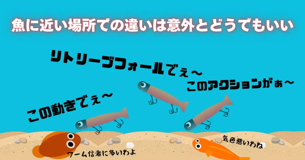 魚に近い場所での違いとは、ルアーの種類やアクション、ルアーのカラーに当たります