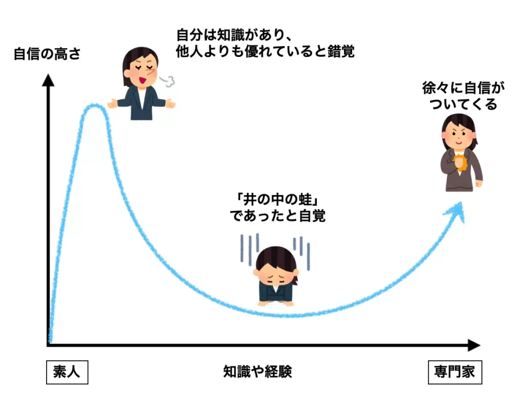 ダニング・クルーガー効果にならないようにするには経験値と実績を積み重ねていく事です