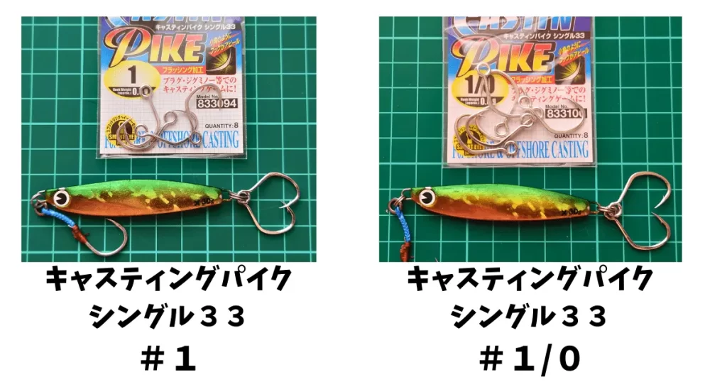 多分ですけど、掛かりやバラシはそんなに変わらないと思うので、見た目の好みで大きいのがいいのか、大きいのはバカそうに見えるかで選べばいいと思います