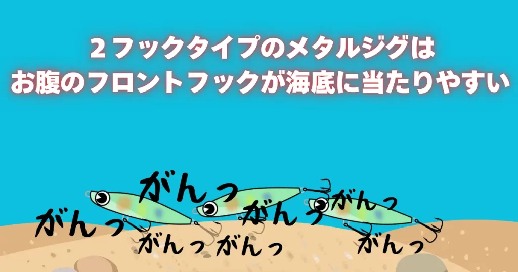 2フックタイプのメタルジグは海底にすごくコンタクトします