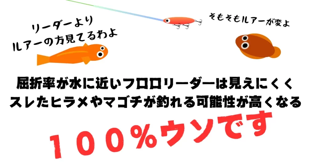 一部の〇カが、1匹釣れただけで「この魚はリーダーが見えなかったから釣れんだお!すごいお!すごいお!」と勘違いしてるんです