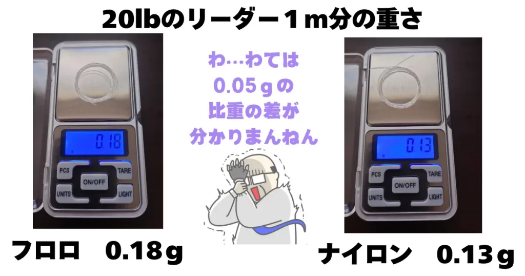 フロロリーダーとナイロンリーダーの重さの差は0.05gです
