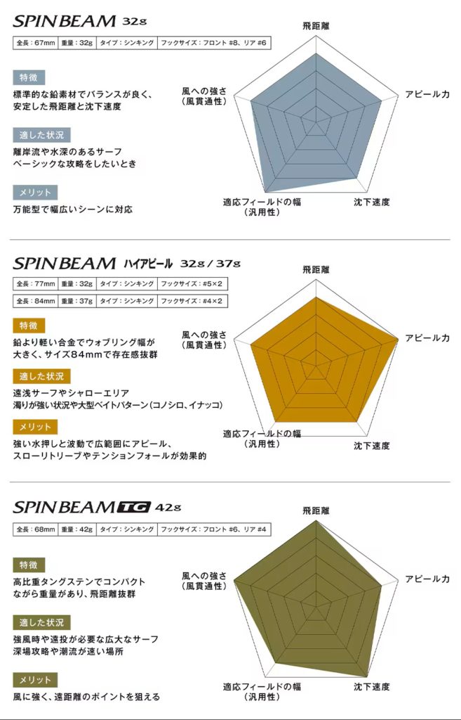 SHIMANO 熱砂 スピンビーム シリーズ スペック一覧