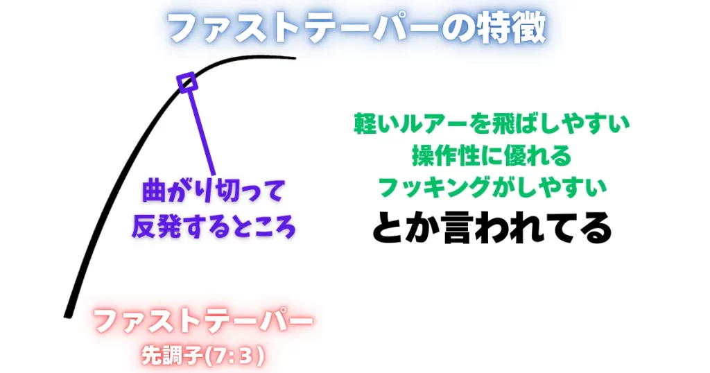 - ファストテーパーは曲がり切るまでが早く戻りも早い
