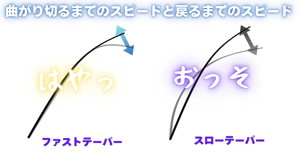 テーパー(曲がり方)の違いで大事なの「曲がる早さ」と「戻りの早さ」