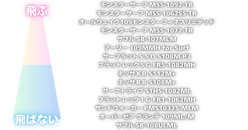 上位2つのモンスターサーフシリーズは亀●2つ分くらい抜けてます