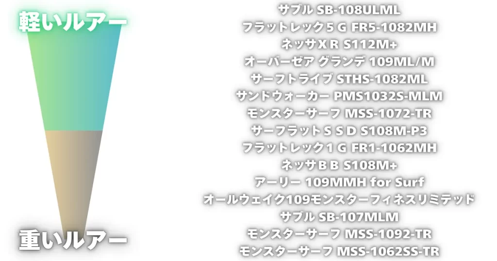 サーフ専用ロッド・軽いルアーか重いルアーか別ロッド一覧