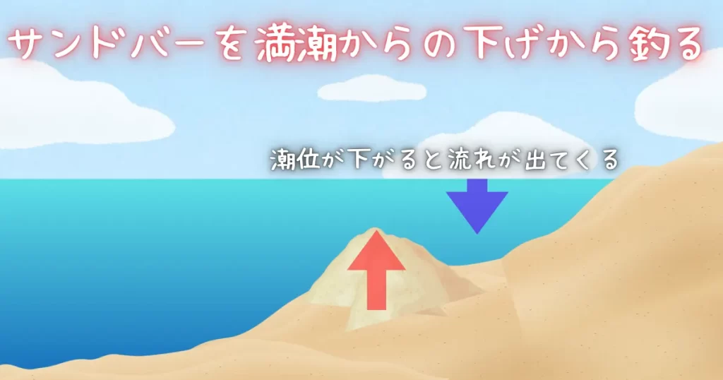 沖目のサンドバーは満潮から狙うのが一番です