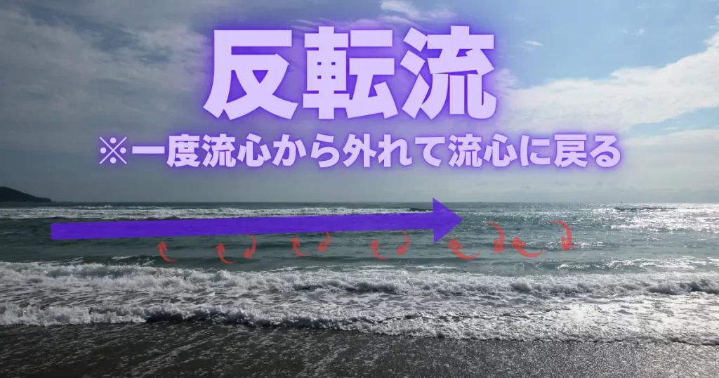 強い流れや離岸流を狙う時は反転流と開きをセットで考えましょう