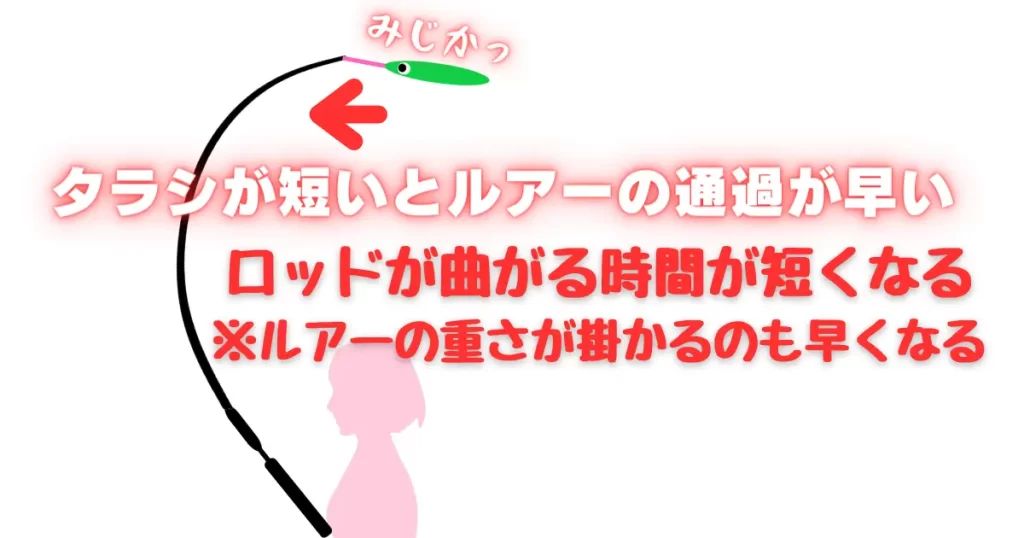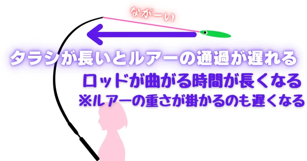 タラシが短いとルアーが頭上を通過するまでの時間が短くなります