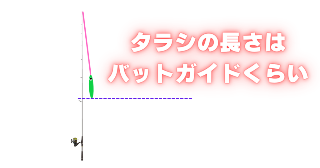 重たいルアーを使ったり柔らかめのロッドの場合は簡単に曲がるのでタラシは短め