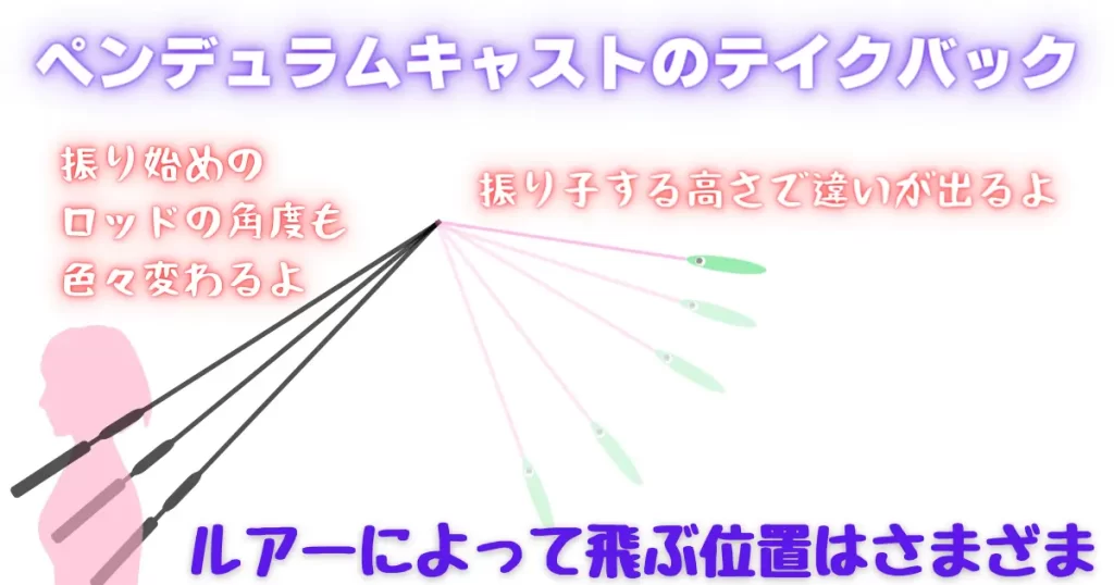 女子アナアングラーの皆様にも、最終的にはペンデュラムキャストでちゃんと100mルアーが飛ばせるようになったらうれしいです